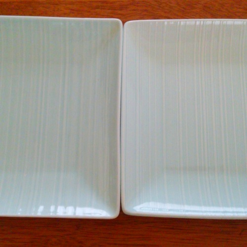 右下:復刻総選挙の薄浅葱角皿(辺約16㎝×高さ約2.2㎝)