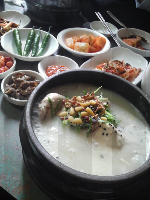 ここもおいしぃ~♪(でも店名や場所は覚えていません…多分ですが「トジョン漢方サムゲタン(토종한방삼계탕)」だったと思います。建物の2階にありました)